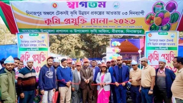 বীরগঞ্জে তিন দিনব্যাপী কৃষি প্রযুক্তি মেলার উদ্বোধন। মোঃ রহিদুল ইসলাম (দিনাজপুর) প্রতিনিধি: দিনাজপুর অঞ্চলে টেকসই কৃষি উন্নয়ন জোরদার করার লক্ষ্যে দিনাজপুরের বীরগঞ্জ উপজেলায় শুরু হয়েছে তিন দিনব্যাপী কৃষি প্রযুক্তি মেলা–২০২৬।